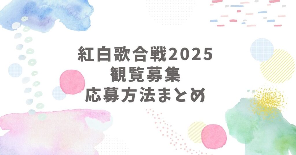 紅白歌合戦2025 観覧募集いつから?応募方法・当選倍率まとめ
