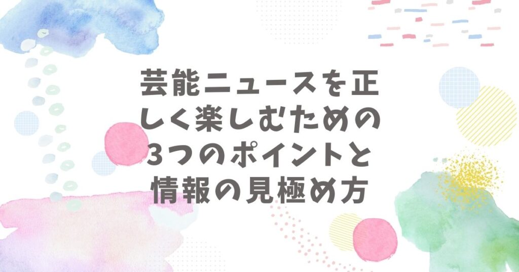 芸能ニュースを正しく楽しむための3つのポイント|情報の見極め方とは?